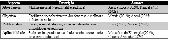 Os trabalhos analisados indicam que o uso de pistas motoras, como o movimento da boca para representar fonemas, reforça o aprendizado e torna a relação entre som e grafia mais acessível.