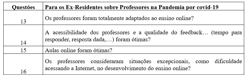 PERGUNTAS PARA OS EX-RESIDENTES SOBRE PROFESSORES NA PANDEMIA
