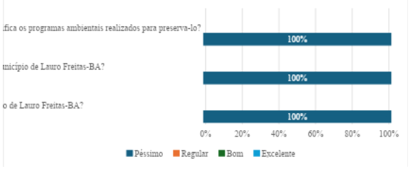 Esses resultados demonstram nitidamente a insatisfação da comunidade lauro-freitense residente aos arredores do rio Sapato sobre as atuais condições do curso hídrico, bem como dos mecanismos utilizados para sua conservação, em correspondência ao que se prevê as legislações que vigoram o bioma local. Conforme os próprios entrevistados opinam sobre as condições ambientais do rio: