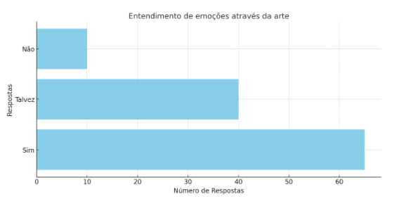 A maioria dos estudantes declarou já ter recorrido a práticas artísticas como forma de enfrentamento em momentos de estresse ou ansiedade. Seja de maneira ocasional ou frequente, o uso da arte como ferramenta de autorregulação emocional é evidente. Isso demonstra o quanto o espaço artístico, mesmo fora de contextos terapêuticos, pode funcionar como um canal de expressão e alívio emocional, especialmente para adolescentes, que vivenciam intensamente transformações e pressões internas e externas. Além disso, muitos participantes afirmaram que essas práticas os ajudam a compreender melhor tanto suas próprias emoções quanto as emoções de outras pessoas. Essa percepção é especialmente importante, pois aponta para o potencial das artes no desenvolvimento de empatia, inteligência emocional e autoconhecimento — habilidades centrais nas chamadas competências socioemocionais.