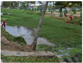 Em notícia divulgada pelo Portal Globoplay no ano de 2024, a população de Lauro Freitas denunciou a presença de plantas aquáticas, especialmente as baronesas, no rio Sapato. Segundo a população, o caso de infestação por plantas aquáticas é recorrente, mesmo com iniciativa municipal em realizar limpezas no rio. Estima-se que a culpabilidade seja a situação precária do sistema de saneamento e de esgotamento (Globo Play, 2024), conforme as figuras 3-A e 3-B apresentam.