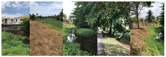 Apesar das várias iniciativas do DGA, infelizmente o rio Sapato ainda é um problema recorrente para Lauro Freitas. Registros fotográficos realizados pelos pesquisadores apresentam as condições atuais do recurso hídrico, constatando-se grave problema de poluição tanto no canal fluvial quanto nas encostas, o que prejudica fauna e flora (figuras 5 e 6).