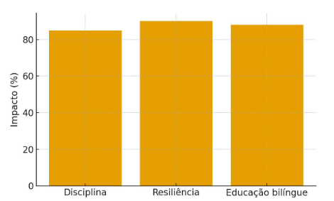 A síntese apresentada no gráfico evidencia que a tríade disciplina–resiliência–bilinguismo opera como engrenagem interdependente. Quando aplicada em projetos educativos, ela amplia horizontes sociais, fortalece vínculos comunitários e gera efeitos duradouros no desenvolvimento humano. A representação gráfica confirma que nenhum dos elementos isolados alcança impacto significativo sem o apoio dos demais: disciplina sem resiliência tende a ser frágil, resiliência sem disciplina corre o risco de ser desorganizada, e bilinguismo sem ambos pode tornar-se elitista. A união das três dimensões resulta em um modelo sólido de inclusão social capaz de ser replicado em diferentes realidades.