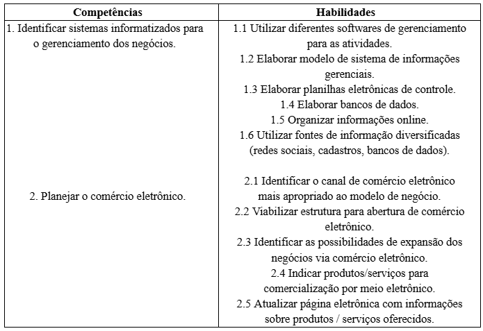 Quadro 2 – Competências e habilidades em Tecnologia da Informação em Administração