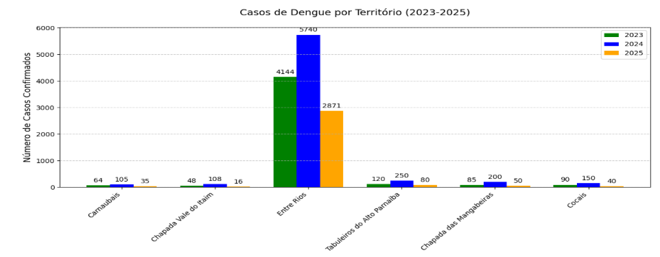 FIGURA 1: COMPARAÇÃO DE CASOS CONFIRMADOS DE DENGUE POR TERRITÓRIO (2023-2025)