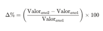 Utilizou-se a linguagem Python com bibliotecas pandas para manipulação de dados e material para visualizações. Totais foram calculados por categoria, e variações percentuais foram estimadas com a fórmula: