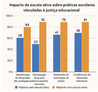 Gráfico 1 – Efeitos da escuta ativa sobre práticas escolares vinculadas à justiça educacional