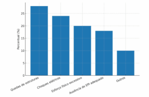 Relatórios do Ministério do Trabalho e Emprego (MTE, 2022) apontam que 72% dos acidentes registrados em eventos de grande escala no Brasil estão relacionados a quedas de estruturas, choques elétricos e esforço físico excessivo.
