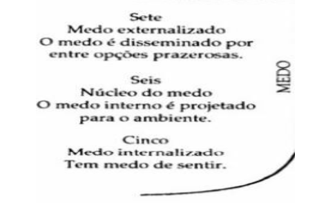No eixo do medo temos o sentimento central, o medo como mobilizador de ação, temos o cinco que se guarda por medo de sentir, o seis que ataca por medo de ser atacado, e o sete que extravasa o medo através de ações arrojadas (Palmer, 1993).