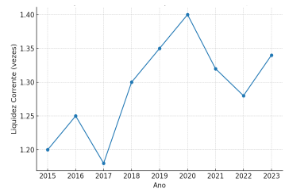 Gráfico 1 – Índice de Liquidez Corrente das Empresas Brasileiras (2015–2023)