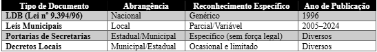 Os dados do quadro 1, mostram que apenas leis locais têm feito algum esforço de reconhecimento formal dos Assistentes de Educação, e mesmo assim de forma heterogênea e não vinculada a uma política nacional. Essa fragmentação gera desigualdade entre os sistemas de ensino, dificultando a mobilidade e a valorização uniforme da categoria. A ausência de dispositivos nacionais também impede o acesso a programas como o FUNDEB, que condicionam recursos à existência de cargos formalizados.