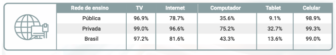 DADOS.ID. Desigualdade no acesso à internet entre estudantes do ensino básico das redes pública e privada. 2020. Disponível em: <https://idados.id/blog/desigualdade-acesso-a-internet-entre-estudantes-do-ensino-basico-das-redes-publica-e-privada>. Acesso em: 31 ago. 2020.